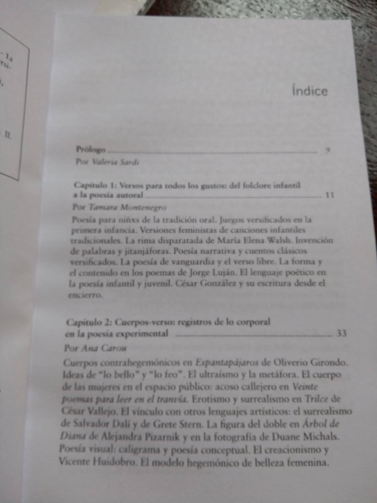 Me querría detener en el capítulo 1 "Versos para todos los gustos: del folclore infantil a la poesía autoral" de Tamara Montenegro. En este capítulo se hace un recorrido bien interesante desde la poesía de tradición oral, pasando por la reinvención del cancionero infantil en clave feminista, para llegar luego a la poesía autoral de María Elena Walsh y recuperar, ahí, el vínculo que muches niñes y jóvenes tienen con esta autora. Luego, Tamara, se adentra en la poesía más experimental de las vanguardias y su apuesta al verso libre para desembarcar en la poética de Jorge Luján. Por último, en un recorrido más que fructífero para abordar la poesía en las aulas, presenta la poética de César González y la escritura desde el encierro.