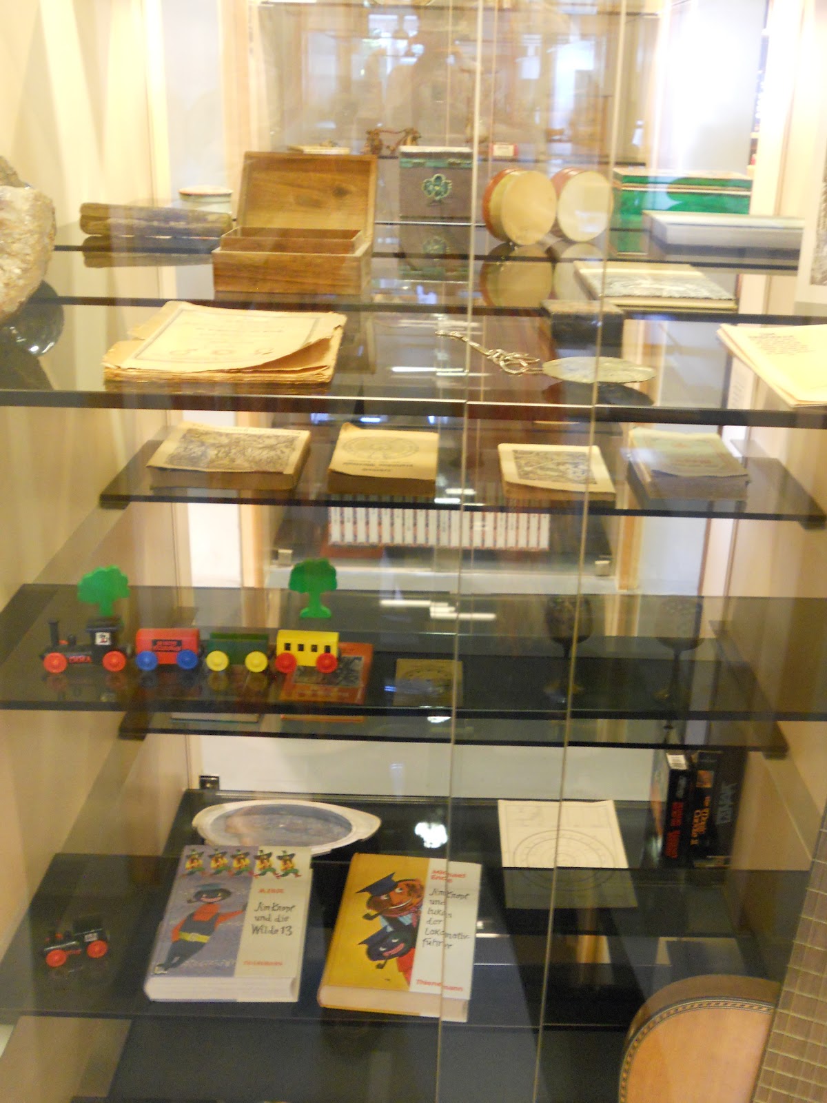 El recorrido se hizo más ameno gracias al señor que se encarga de recibir a los visitantes y amablemente nos fue contando y presentando el recorrido por la sala. Cuando supo que éramos argentinos, nos mostró algunas ediciones en español de la obra de Ende y se interesó por saber si sus libros se conseguían acá. También nos contó que Mariko Sato, su última mujer, fue la traductora de sus libros al japonés y promotora de su literatura en ese país oriental. Además, nos enteramos que Ende hizo un libreto de su libro Momo para ópera que se estrenó en 1978 con música de Mark Lothar, curiosidad por mí desconocida sobre la producción de Ende.